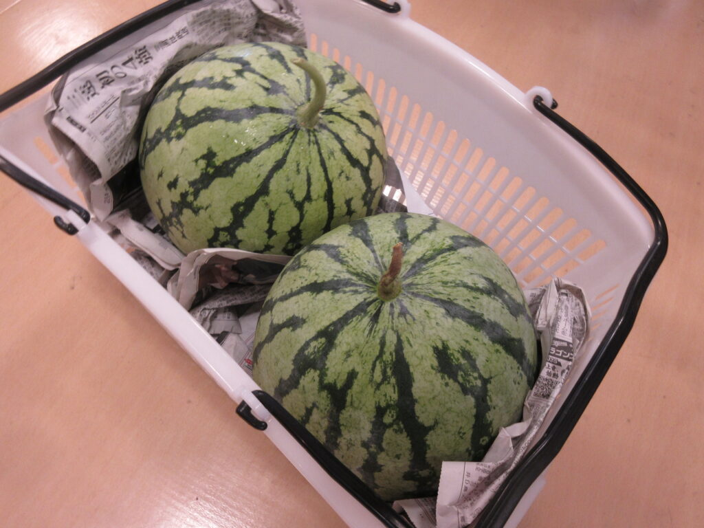 (割れたスイカは衛生面を考慮し職員が頂きましたがとても甘かったです♪)